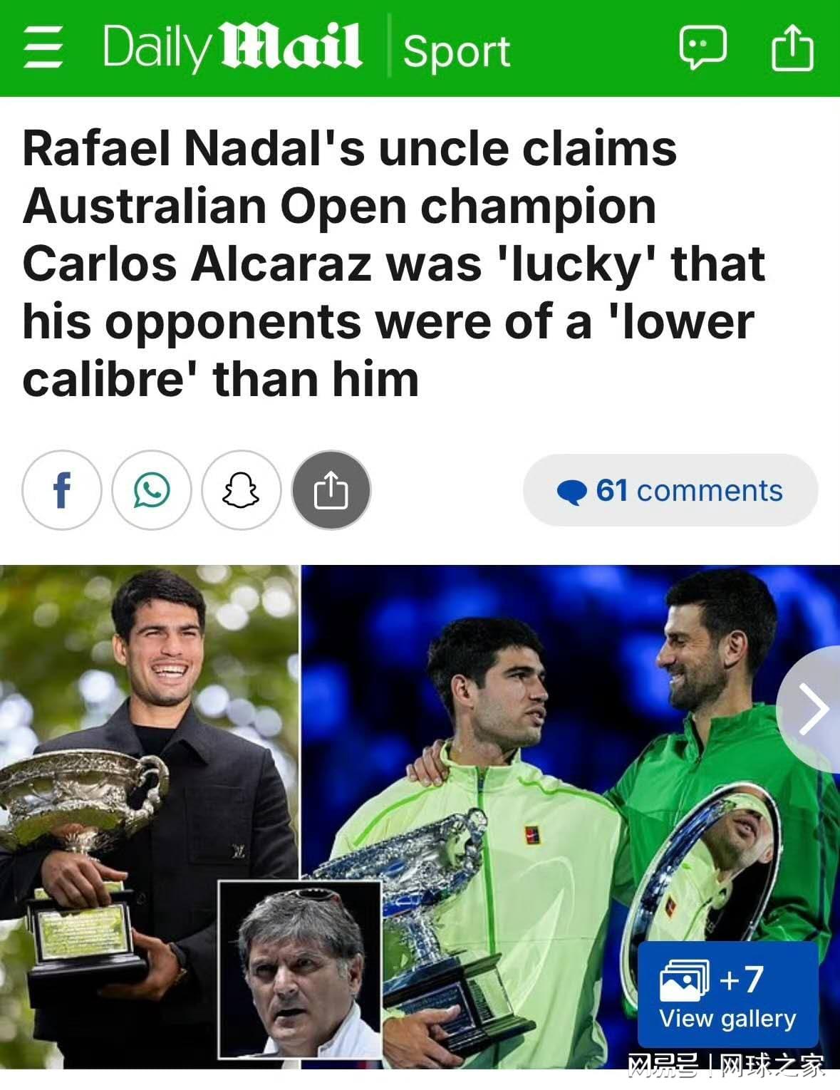 托尼叔叔的这番发言迅速引发了网球圈内外的广泛讨论。