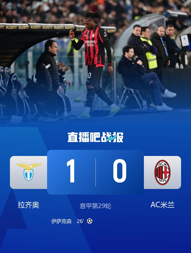 错失追分良机!米兰0-1拉齐奥距榜首8分 莱奥低迷+被换时闹矛盾